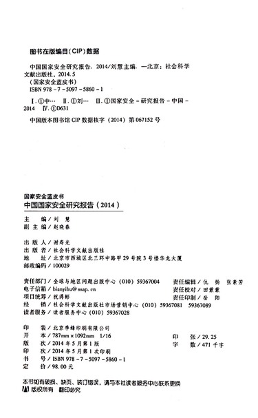 中国国家安全研究报告(2014版)/国家安全蓝皮书