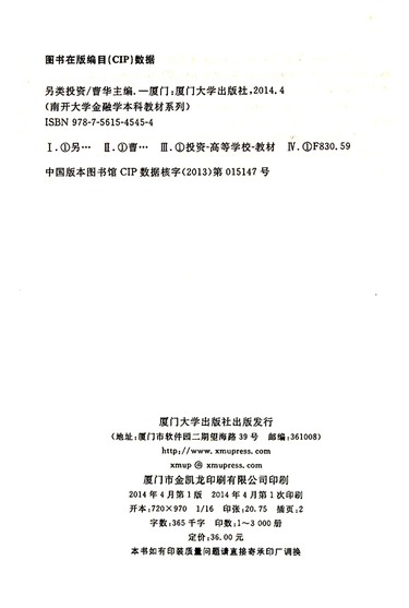 另类投资/南开大学金融学本科教材系列