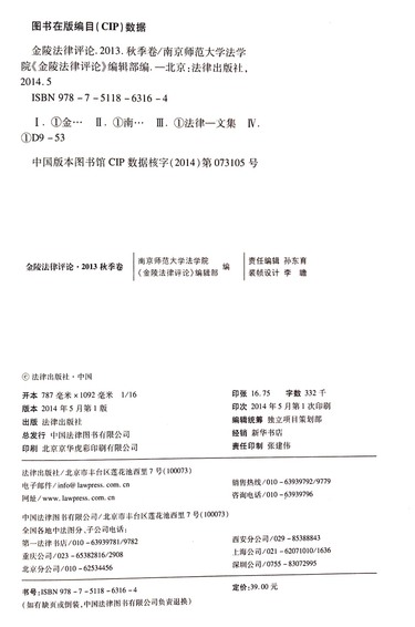 作者 南京师范大学法学院金陵法律评论编辑部
