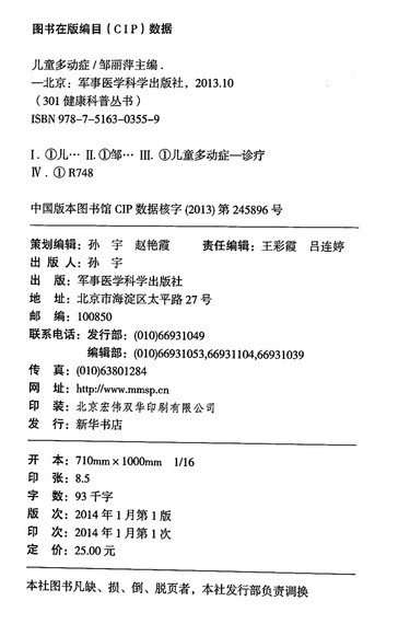 儿童多动症/301健康科普丛书