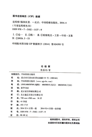 出版社 中国检察出版社