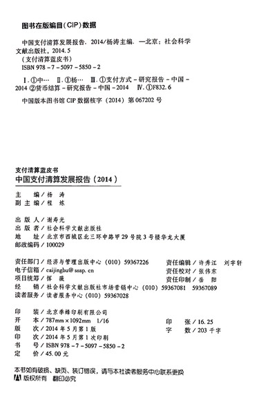 中国支付清算发展报告(2014版)/支付清算蓝皮书