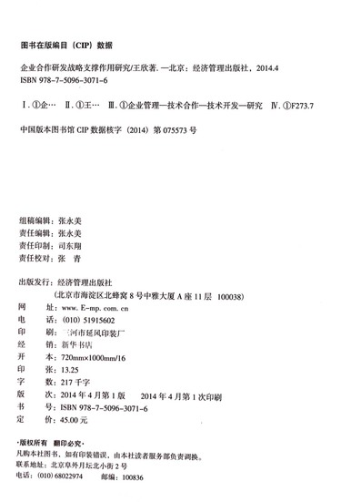 企业合作研发战略支撑作用研究--基于开放式创新环境的视角/创新管理与政策前沿系列