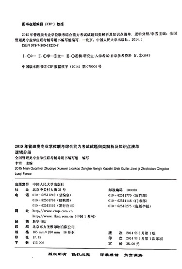 2015年管理类专业学位联考综合能力考试试题归类解析及知识点清单(逻辑分册)