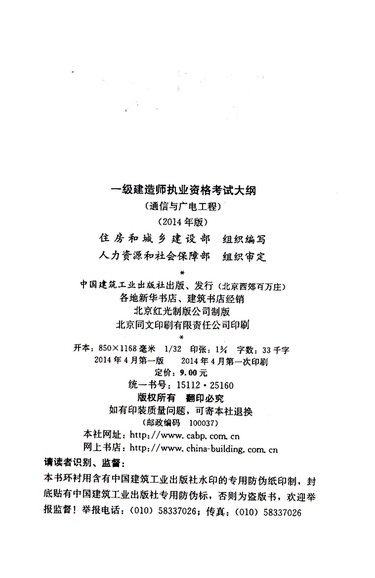 一级建造师执业资格考试大纲(通信与广电工程2014年版1L400000)