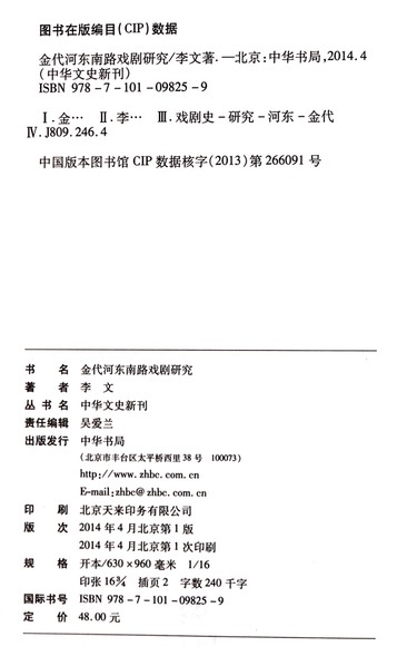 金代河东南路戏剧研究/中华文史新刊