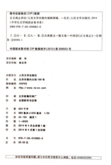 出版社 人民文学出版社