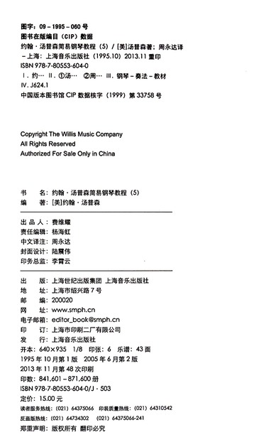 约翰·汤普森简易钢琴教程(共5册原版引进)