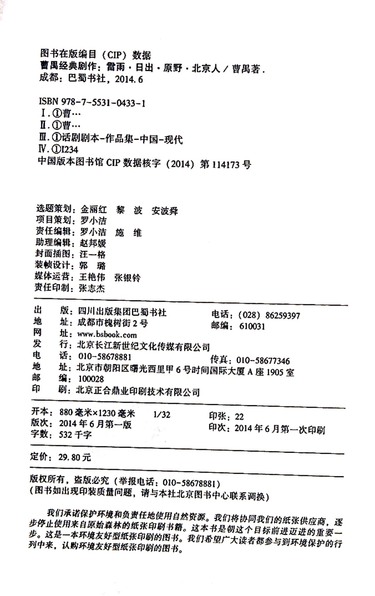 雷雨日出原野北京人(曹禺经典剧作签名印章典藏版)/琥珀经典文丛