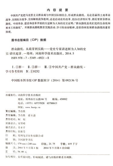 群众路线--从萌芽到实践(党史专家讲述鲜为人知的史实)