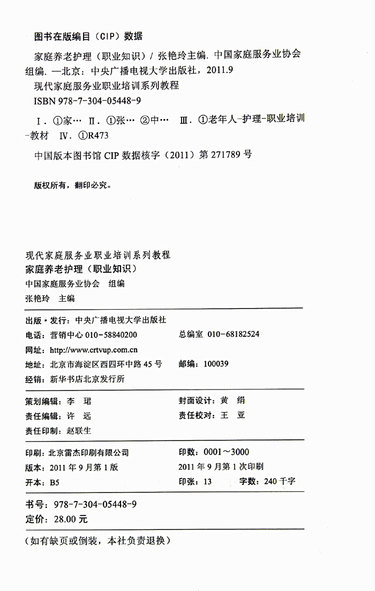 家庭养老护理(职业知识现代家庭服务业职业培训系列教程)