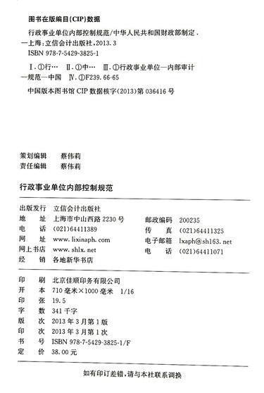 行政事业单位内部控制规范(行政事业单位内部控制培训指定教材)