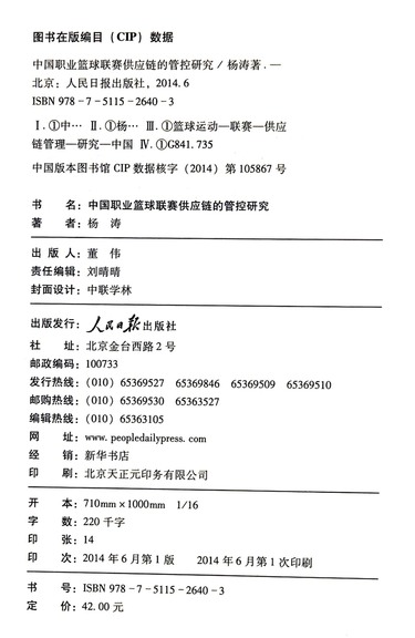中国职业篮球联赛供应链的管控研究/人民日报学术文库