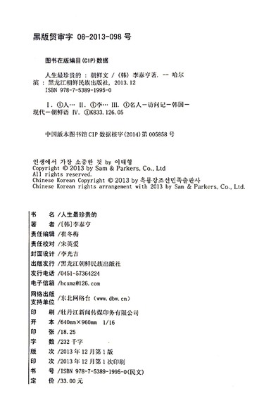 人生最珍贵的(朝鲜文版)