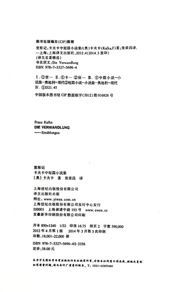 变形记--卡夫卡中短篇小说集(译文名著精选)