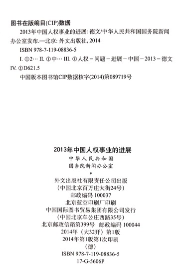 2013年中国人权事业的进展(德文版)
