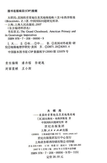 大棋局--美国的首要地位及其地缘战略/东方编译所译丛
