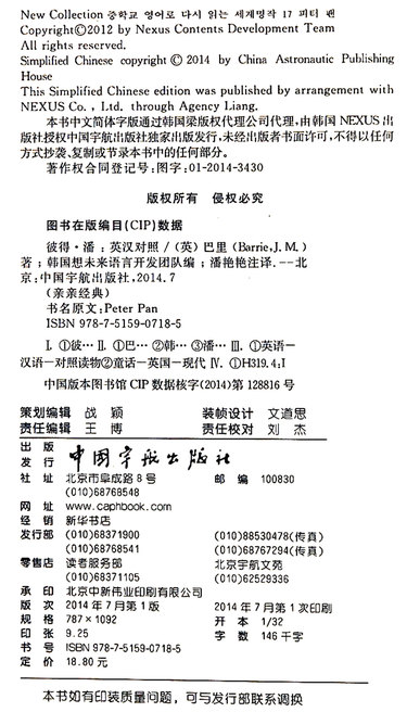 彼得·潘(中英双语对照)/亲亲经典