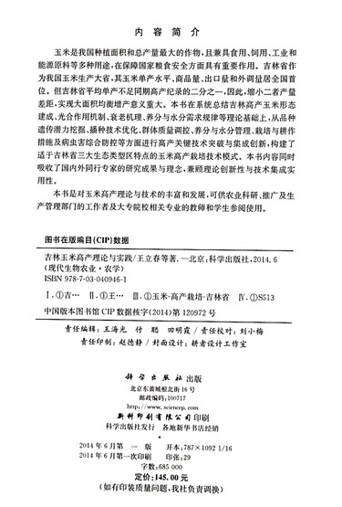 吉林玉米高产理论与实践(农学现代生物农业)
