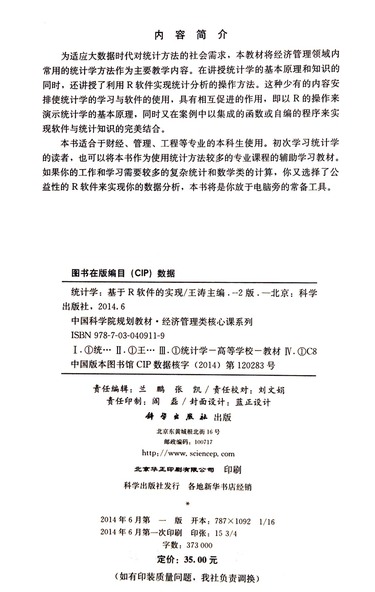 统计学--基于R软件的实现(第2版中国科学院规划教材)/经济管理类核心课系列