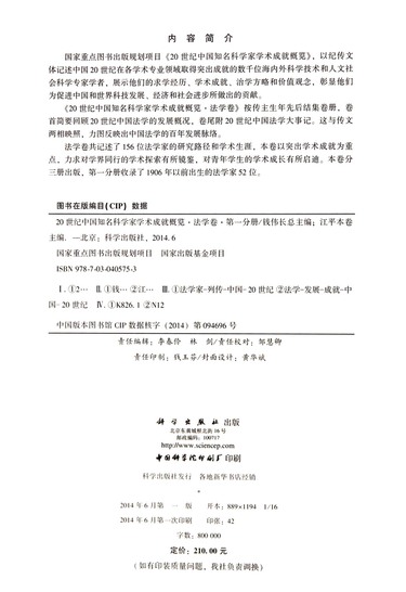 20世纪中国知名科学家学术成就概览(法学卷第1分册)(精)