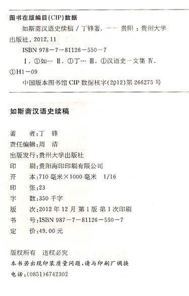 如斯斋汉语史续稿