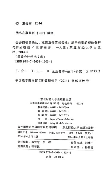 合并商誉的确认减值及价值相关性--基于准则的理论分析与实证检验/墨香会计学术文库