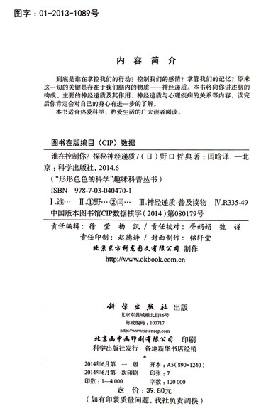 谁在控制你探秘神经递质(四色全彩)/形形色色的科学