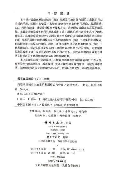 高原湖滨城市土地集约利用模式与管理