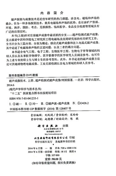 磁声成像技术(上超声检测式磁声成像)/现代声学科学与技术丛书