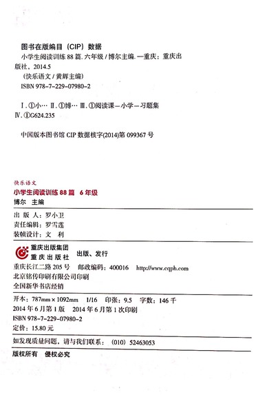 小学生阅读训练88篇(6年级)/快乐语文