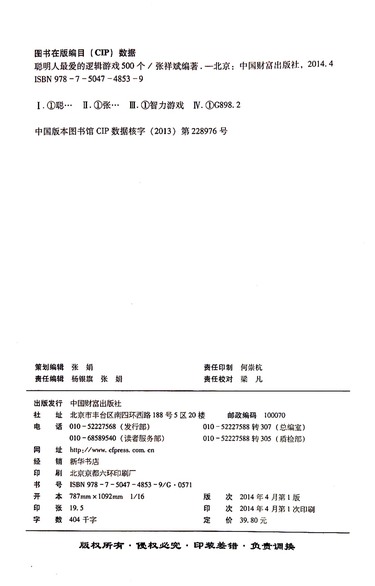 聪明人最爱的逻辑游戏500个