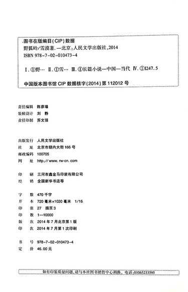 商品编码(ISBN) 9787020104734