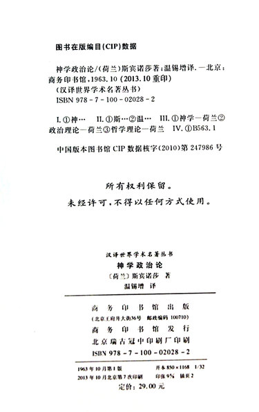神学政治论/汉译世界学术名著丛书