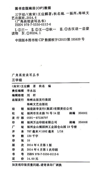 三字经/广角高效读写丛书