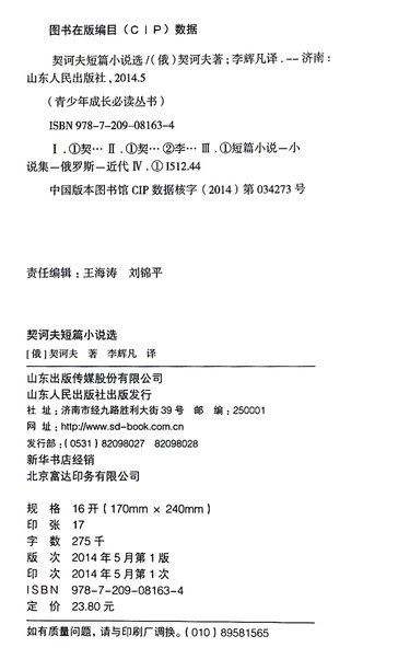 契诃夫短篇小说选/青少年成长必读丛书