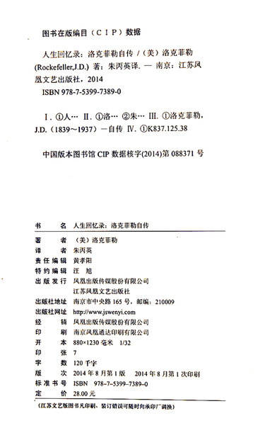 人生回忆录(洛克菲勒自传)