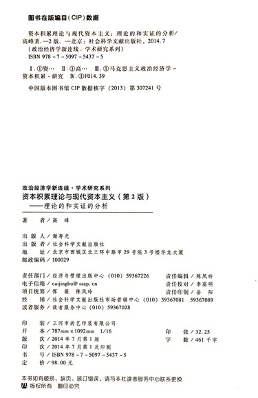 资本积累理论与现代资本主义--理论的和实证的分析(第2版)/政治经济学新连线学术研究系列