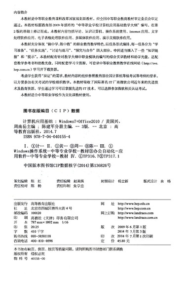 计算机应用基础(Windows7+Office2010第3版中等职业教育课程改革国家规划新教材)