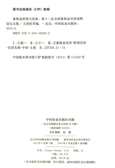 畜牧业转型与发展--第十二次全国畜牧业经济高峰论坛文集