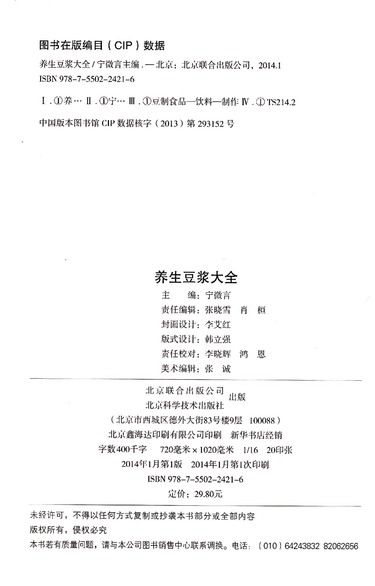 养生豆浆大全/中国家庭必备工具书