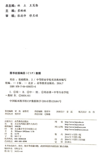 英语基础模块(2第2版中等职业教育课程改革国家规划新教材)