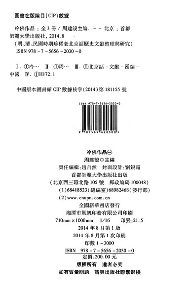 冷佛作品(共3册明清民国时期珍稀老北京话历史文献整理与研究)(精)