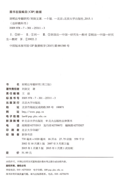 财税法专题研究(第3版法研教科书)