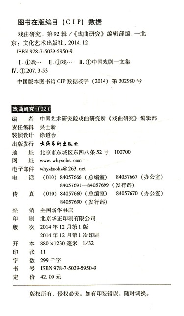 戏曲研究(第92辑)