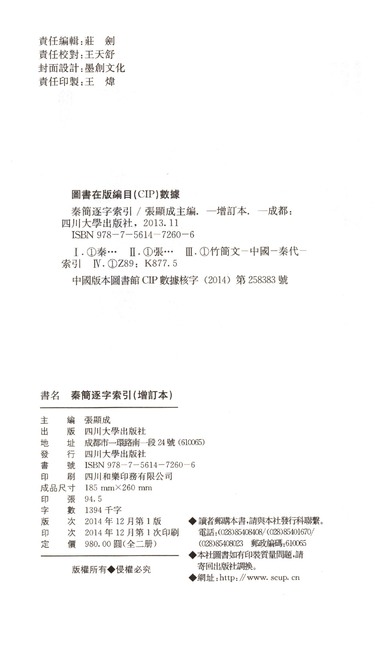 秦简逐字索引(增订本共2册)(精)/简帛逐字索引大系