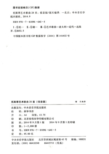 出版社 中央音乐学院出版社