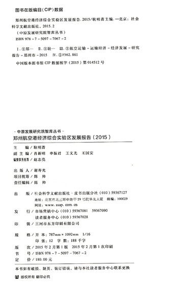 郑州航空港经济综合实验区发展报告(2015)(精)/中原发展研究院智库丛书