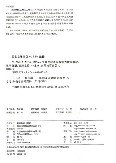 2016MBA\MPA\MPAcc管理类联考综合能力辅导教材(数学分册)