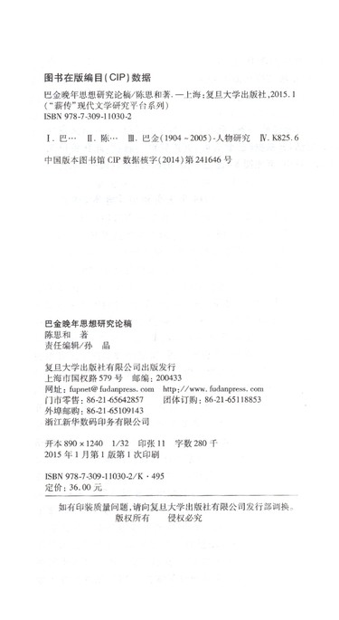 巴金晚年思想研究论稿(精)